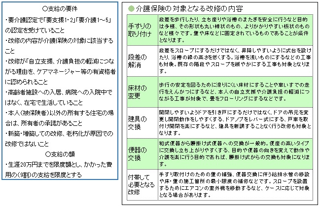 | 住宅改修費(介護予防住宅改修費)の用件 |